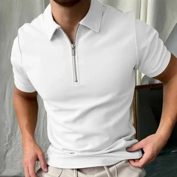 Men’s Polo Shirt Quarter Zip Polo Outdoor Street Turndown Quarter Zip Short Sleeve Fashion Casual Solid Colored Zipper Quarter Zip Summer Spring Regular Fit Black White Yellow Pink Blue Green Polo