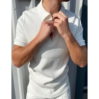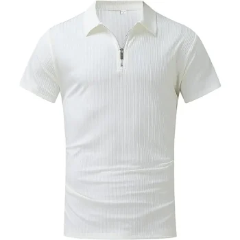 Men’s Polo Shirt Golf Shirt Going out golf shirts Quarter Zip Short Sleeve Streetwear Sportswear Textured Waves Zipper Spring & Summer Slim Black Yellow Pink Red Navy Blue Blue Polo Shirt