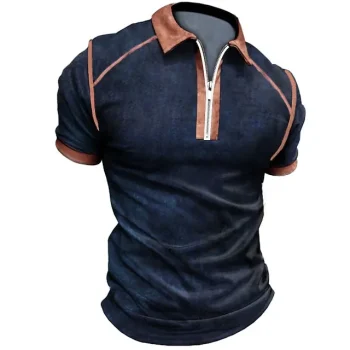 Men’s Polo Shirt Quarter Zip Polo Going out golf shirts Turndown Quarter Zip Short Sleeve Sports Designer Vintage Patchwork Zipper Spring & Summer Slim Black Navy Blue Dark Green Polo Shirt