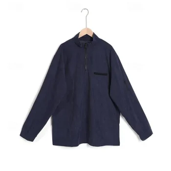 Men’s Polo Shirt Quarter Zip Polo Work Daily Wear Lapel Long Sleeve Fashion Comfortable Plain Pocket Zip Up Summer Spring Regular Fit Yellow Navy Blue Dark Grey Army Green Polo Shirt
