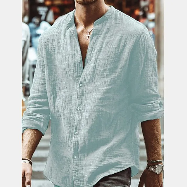 Men’s Linen Shirt Shirt Summer Shirt Beach Shirt White Blue Brown Long Sleeve Solid Color Henley Spring Fall Outdoor Street Clothing Apparel Button-Down
