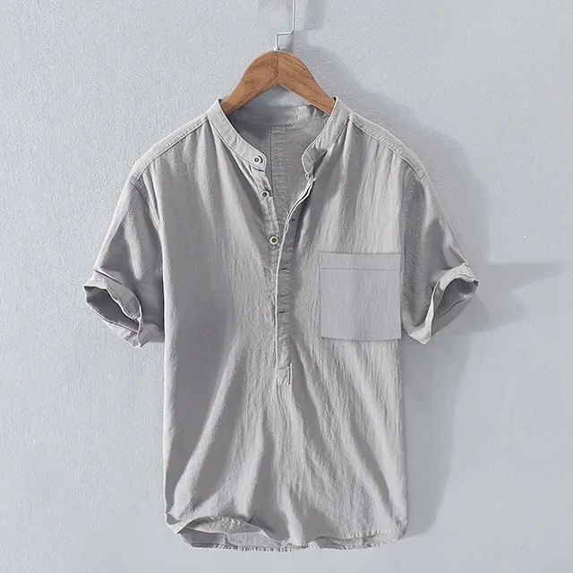 Men's Linen Shirt Summer Shirt Beach Shirt White Royal Blue Blue Short Sleeve Plain Stand Collar Summer Casual Daily Clothing Apparel