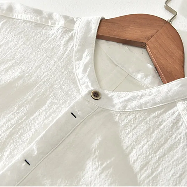 Men’s Linen Shirt Summer Shirt Beach Shirt White Royal Blue Blue Short Sleeve Plain Stand Collar Summer Casual Daily Clothing Apparel