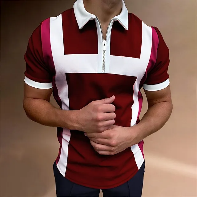 Men’s Polo Shirt Quarter Zip Polo Outdoor Street Turndown Quarter Zip Short Sleeve Fashion Casual Striped Zipper Quarter Zip Summer Regular Fit Black Wine Royal Blue Polo Shirt