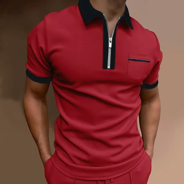 Men's Zip Polo Polo Shirt Gym golf shirts Turndown Quarter Zip Short Sleeve Sports Designer Solid Colored Patchwork Quarter Zip Spring & Summer Slim Wine Black / Red Black-White Black / Gray White