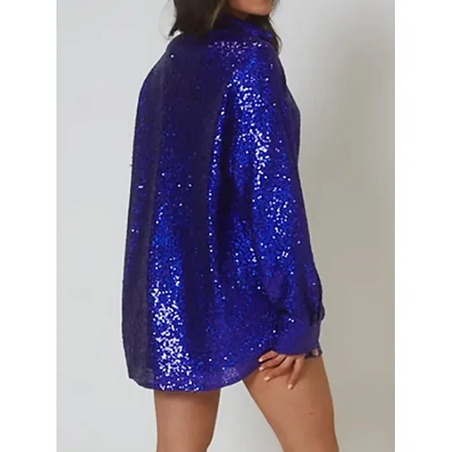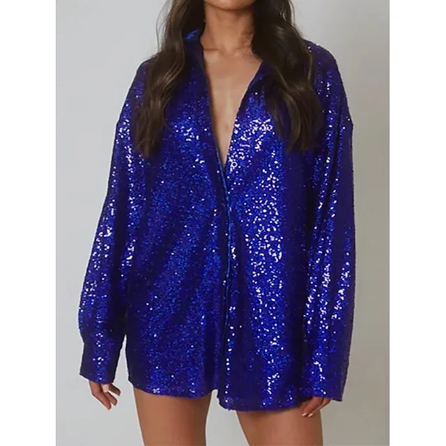 Shirt Blouse Women's Pink Blue Sparkly Button Street Daily Fashion Shirt Collar Regular Fit S