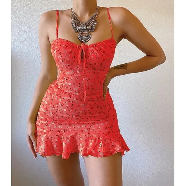 Women’s Party Dress Sundress Strap Dress Mini Dress White Yellow Pink Sleeveless Floral Ruffle Summer Spring Cold Shoulder Stylish 2022 S M L XL XXL