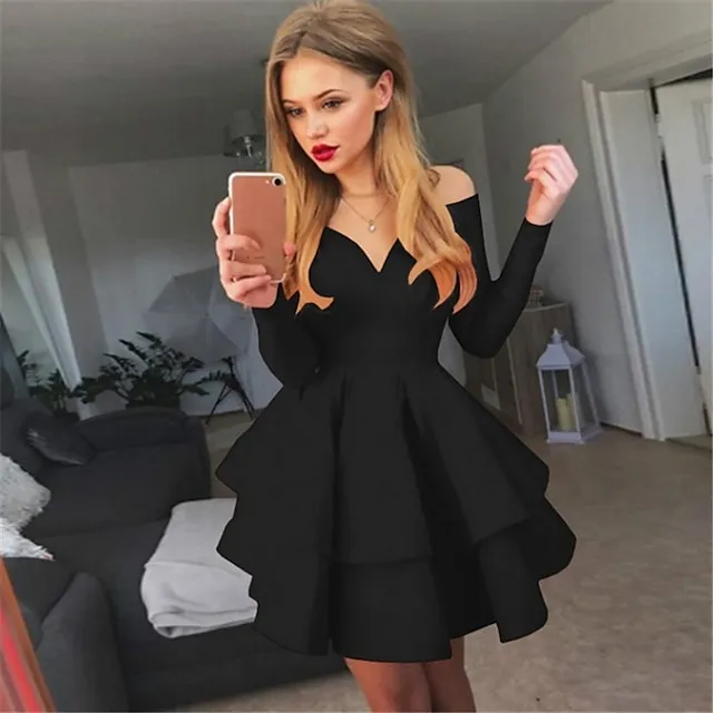 Women‘s Party Dress White Dress Black Red White Long Sleeve Pure Color Pleated Winter Fall Autumn Off Shoulder Party Winter Dress S M L XL XXL