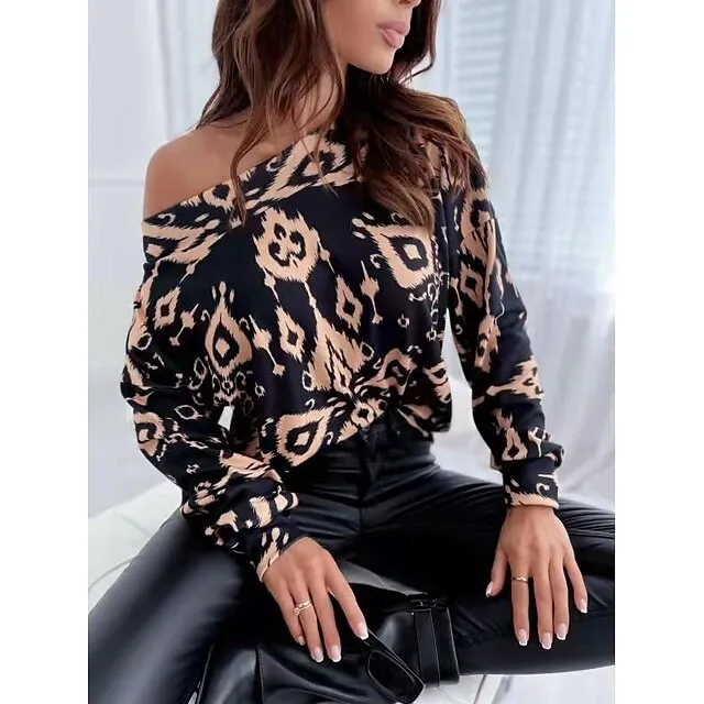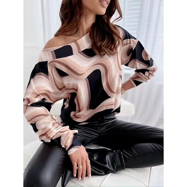 Women's Shirt Blouse Graphic Casual Black White Pink Print Long Sleeve Daily Basic Off Shoulder Regular Fit Fall & Winter