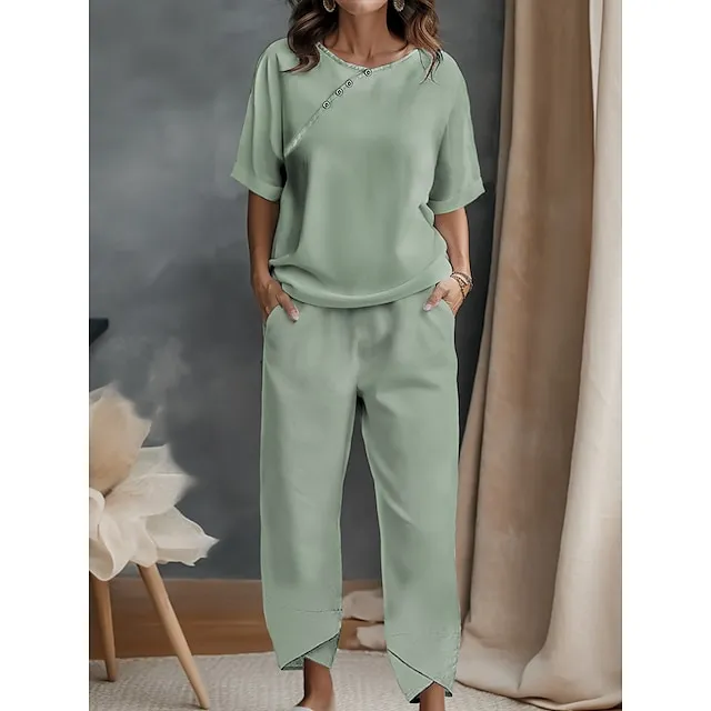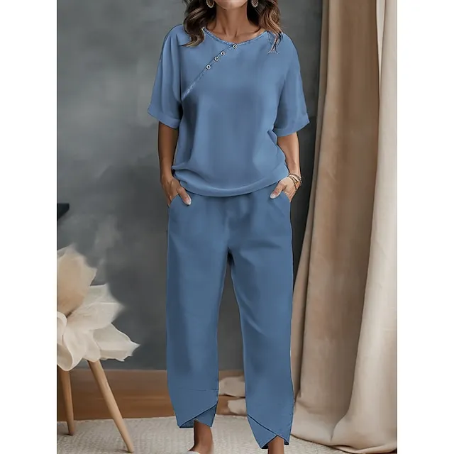 Women's Shirt Pants Sets Solid Color Black White Red Print Casual Daily Daily Basic Round Neck Regular Fit Fall & Winter