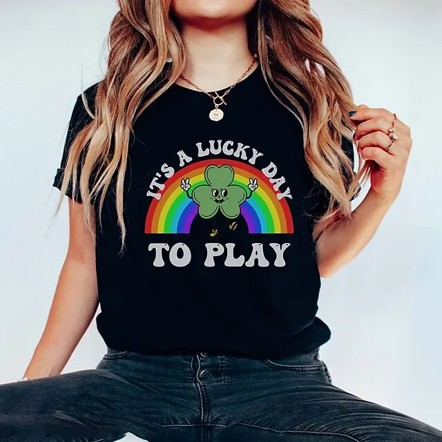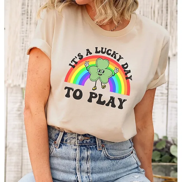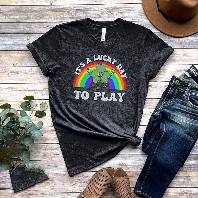 Women's T shirt Tee Cotton Shamrock Letter Party St.Patrick's Day Holiday Black Green Khaki Print Short Sleeve Classic Round Neck OT Shirt Occupational therapy shirt Funny St. Patrick day OT shirt